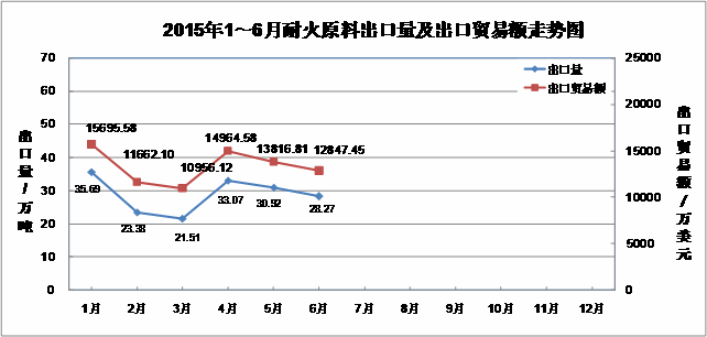 In 1-6 months, the total import and export trade of refractory raw materials was 1 billion 602 million US dollars, down 6.91% from the same period last year. Among them, the volume of export trade was US$1.526 billion, down 5.27% from the same period last year, and the volume of import trade was US$076 million, down 31.34% from the same period last year.