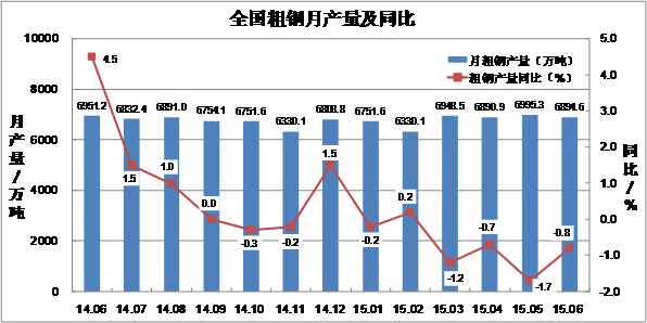 In June 2015, the added value of above scale industries increased by 0.64% over the previous month. In 1-6, the added value of above scale industries increased by 6.3% over the same period last year.